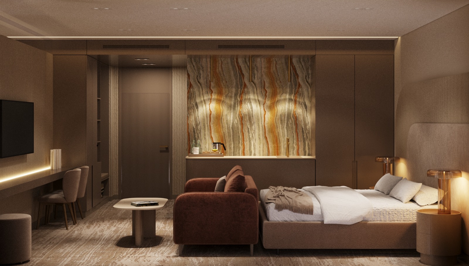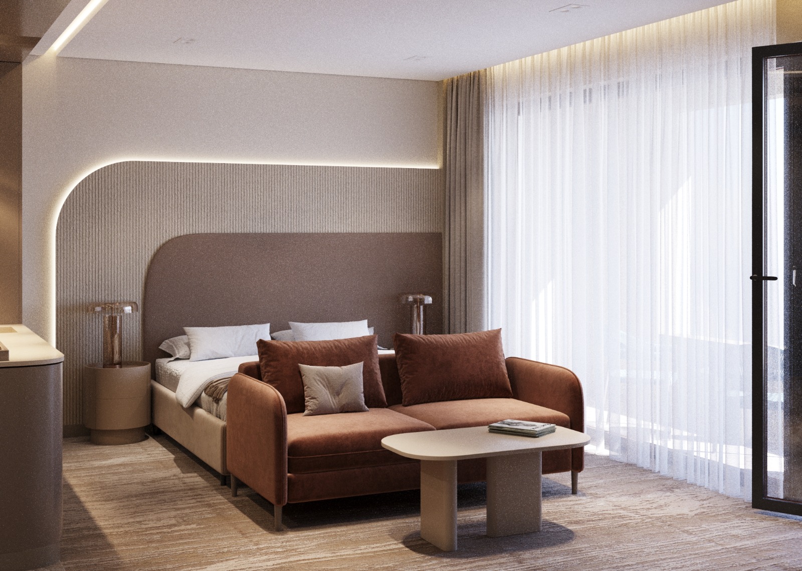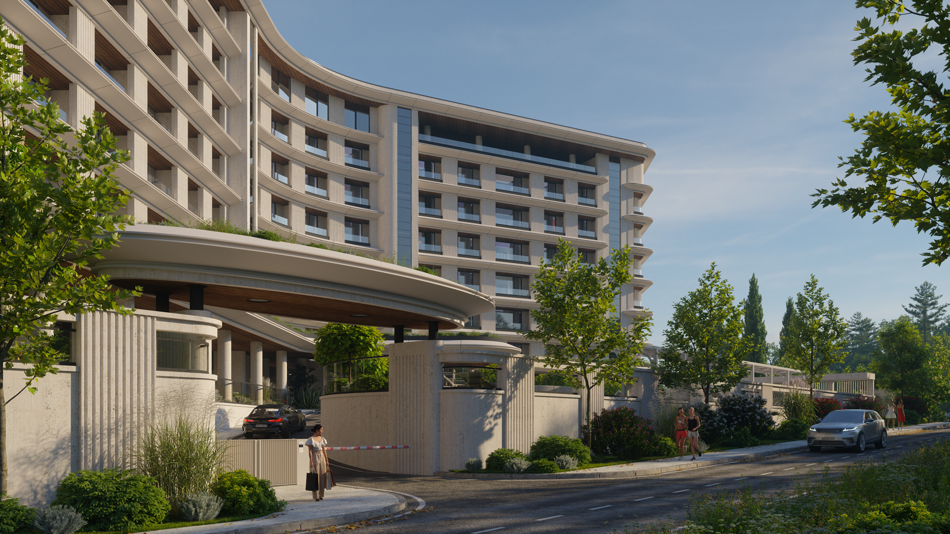 Среди преимуществ комплекса: 8-этажное здание в современном стиле с фасадом из натурального травертина и архитектурной подсветкой, большой подогреваемый бассейн с детской аквазоной и джакузи, ресторан à la carte, бар у бассейна, полноценный SPA & Wellness-центр, детская площадка, зона анимации, лаундж-террасы и ландшафтный дизайн территории.